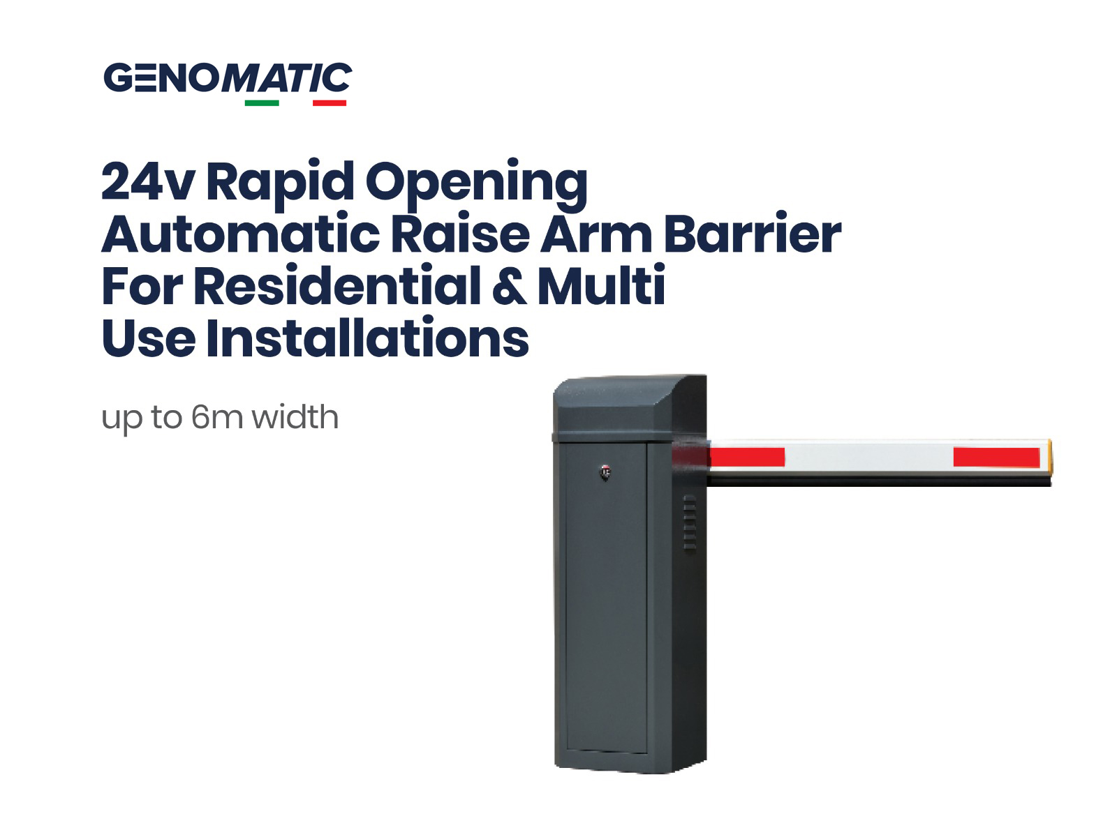 Upgrade your access management capabilities with the GENOMATIC Boom Barrier. Contact us today to explore how this innovative solution can enhance security and efficiency in your space. Elevate your access control with GENOMATIC , where automation meets reliability.