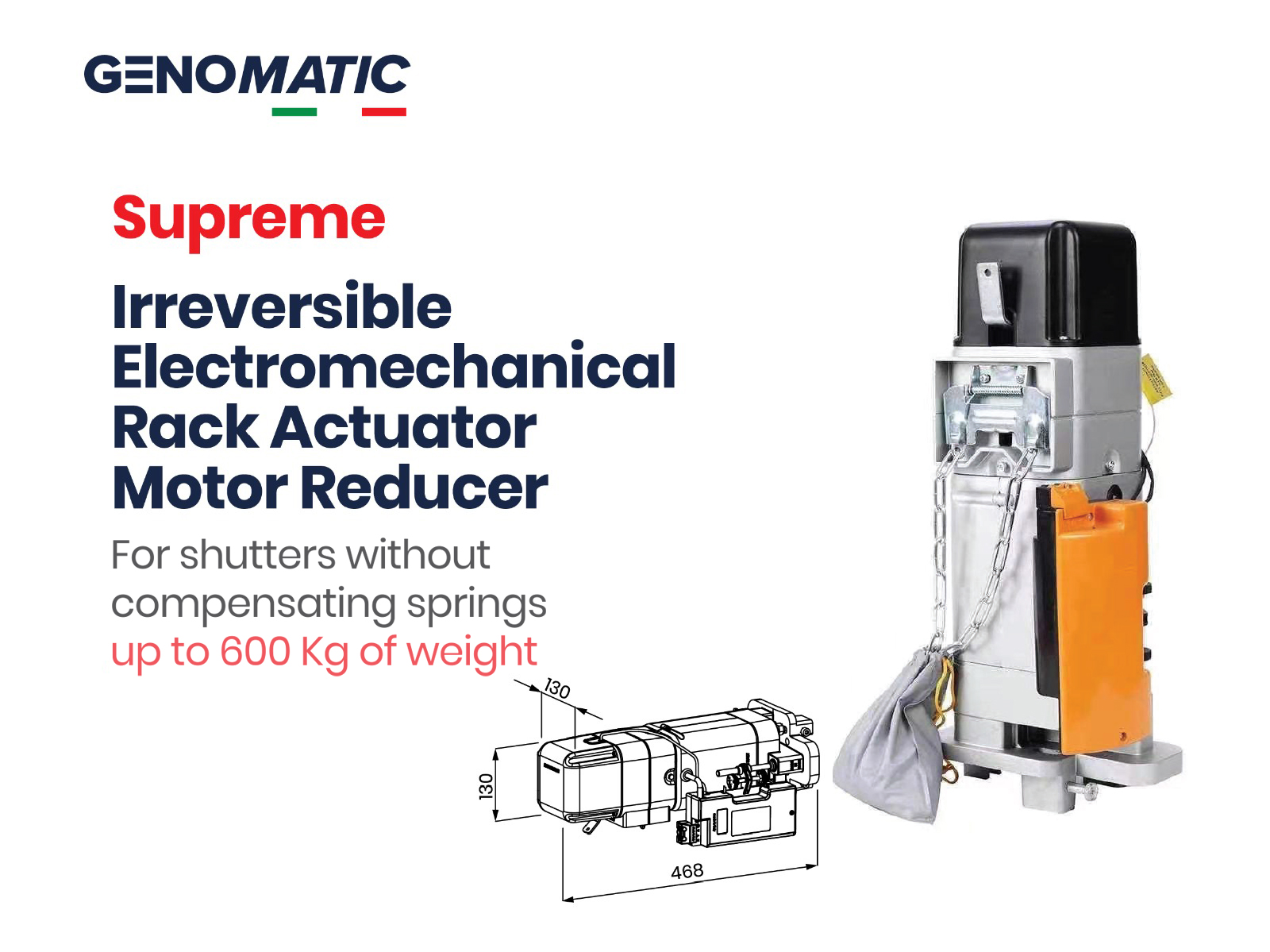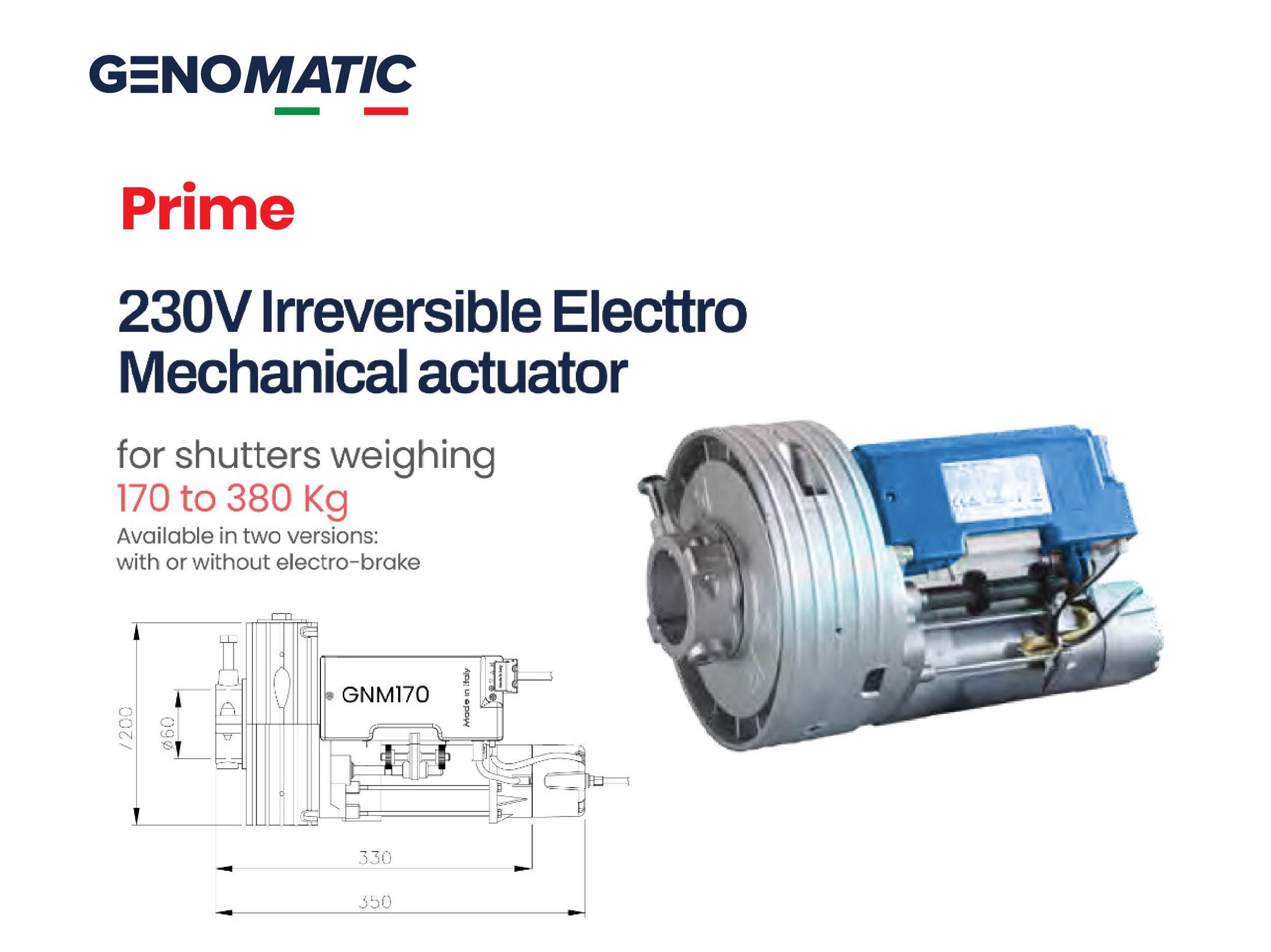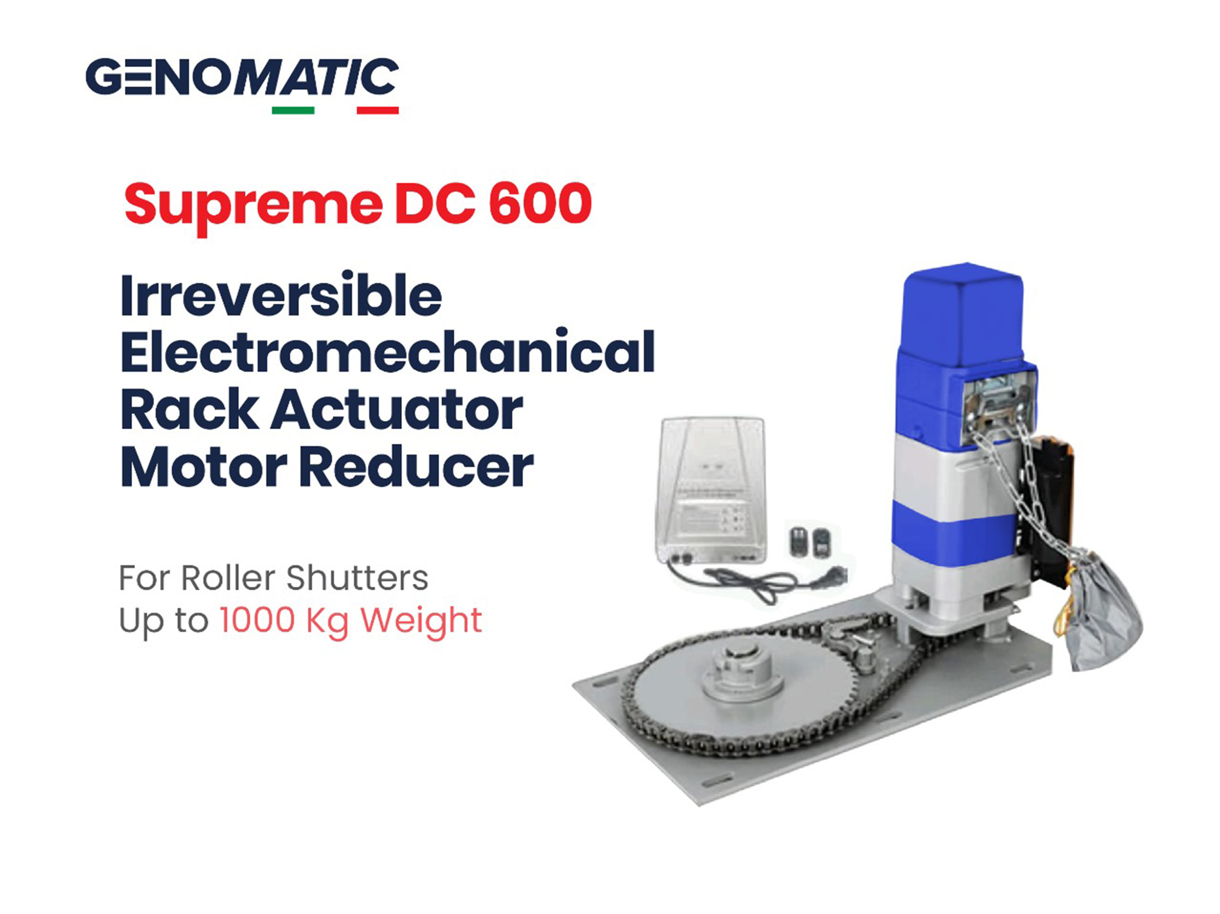No matter the size or weight of your shutters, GENOMATIC rises to the occasion. Designed to effortlessly handle shutters ranging from 180kg to 600kg, our automations ensure smooth operation every time, without compromising on safety or durability.